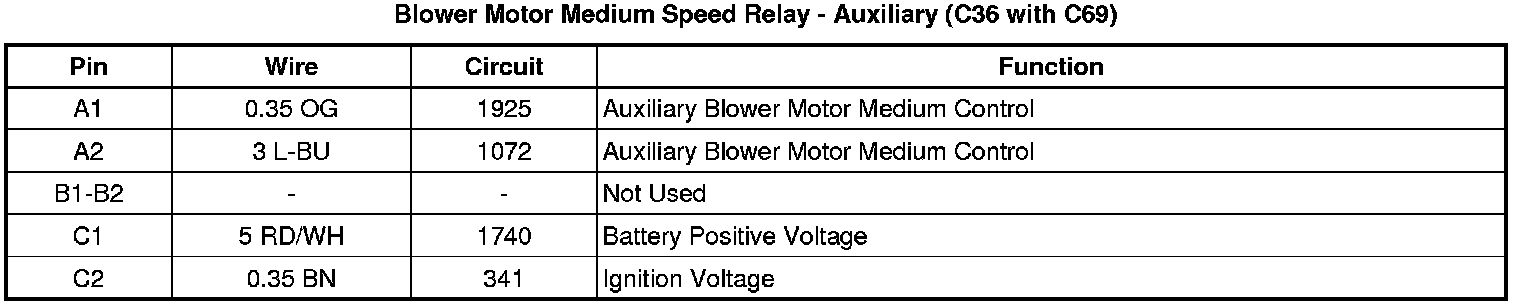 Blower Motor Medium Speed Relay - Auxiliary (C36 with C69)