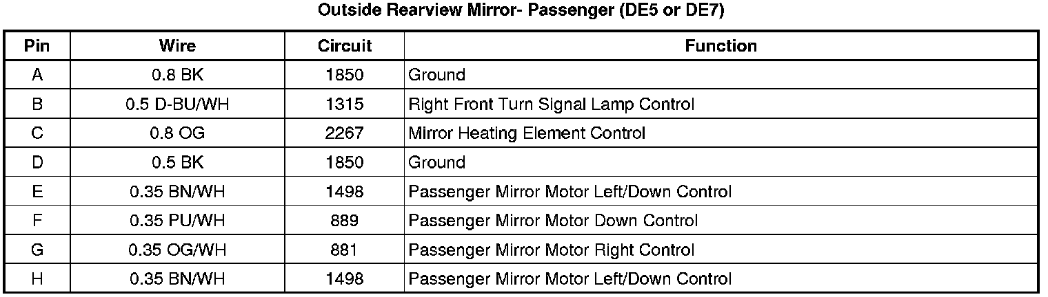 Outside Rearview Mirror- Passenger (DE5 or DE7)
