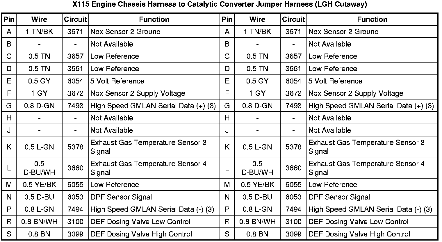 X115 Engine Chassis Harness to Catalytic Converter Jumper Harness (LGH Cutaway)