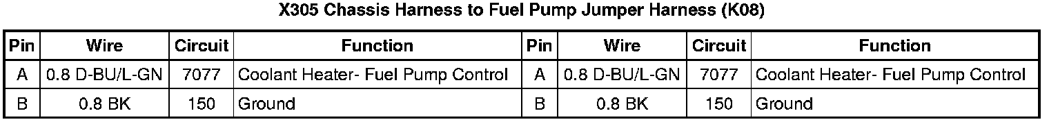 X305 Chassis Harness to Coolant Heater Fuel Pump Jumper Harness (K08)