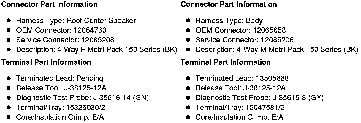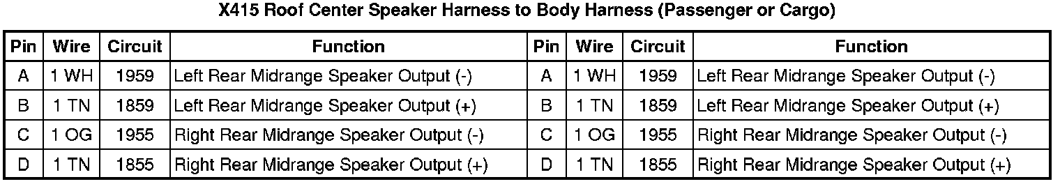 X415 Roof Center Speaker Harness to Body Harness (Passenger or Cargo)