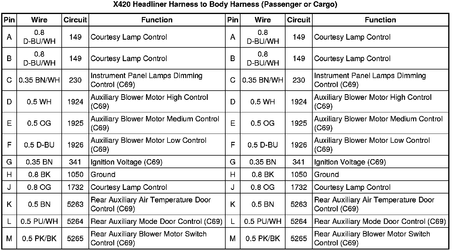 X420 Headliner Harness to Body Harness (Passenger or Cargo)