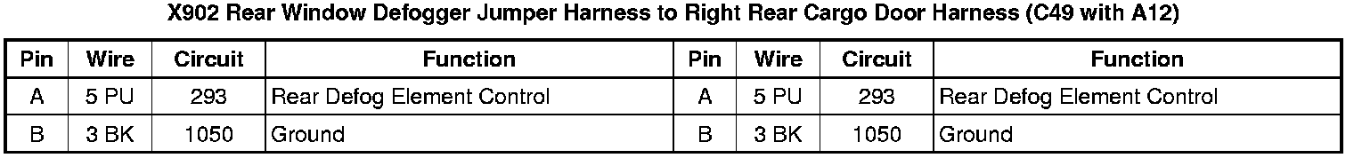 X902 Rear Window Defogger Jumper Harness to Right Rear Cargo Door Harness (C49 with A12)