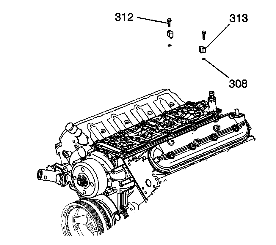 4. As required, install either a new plug or the earlier design coolant air bleed covers (313) and gaskets (308).