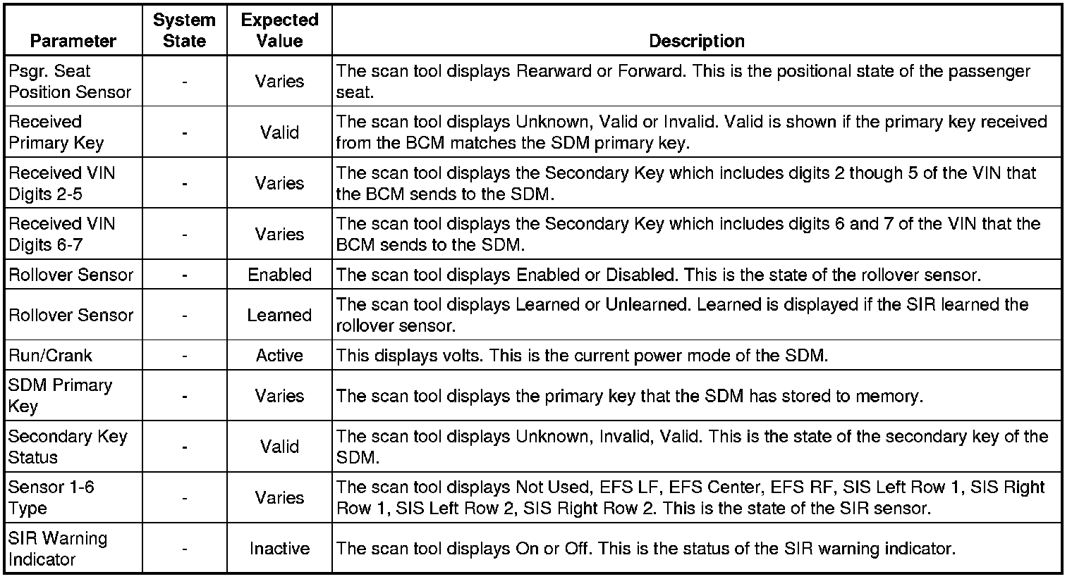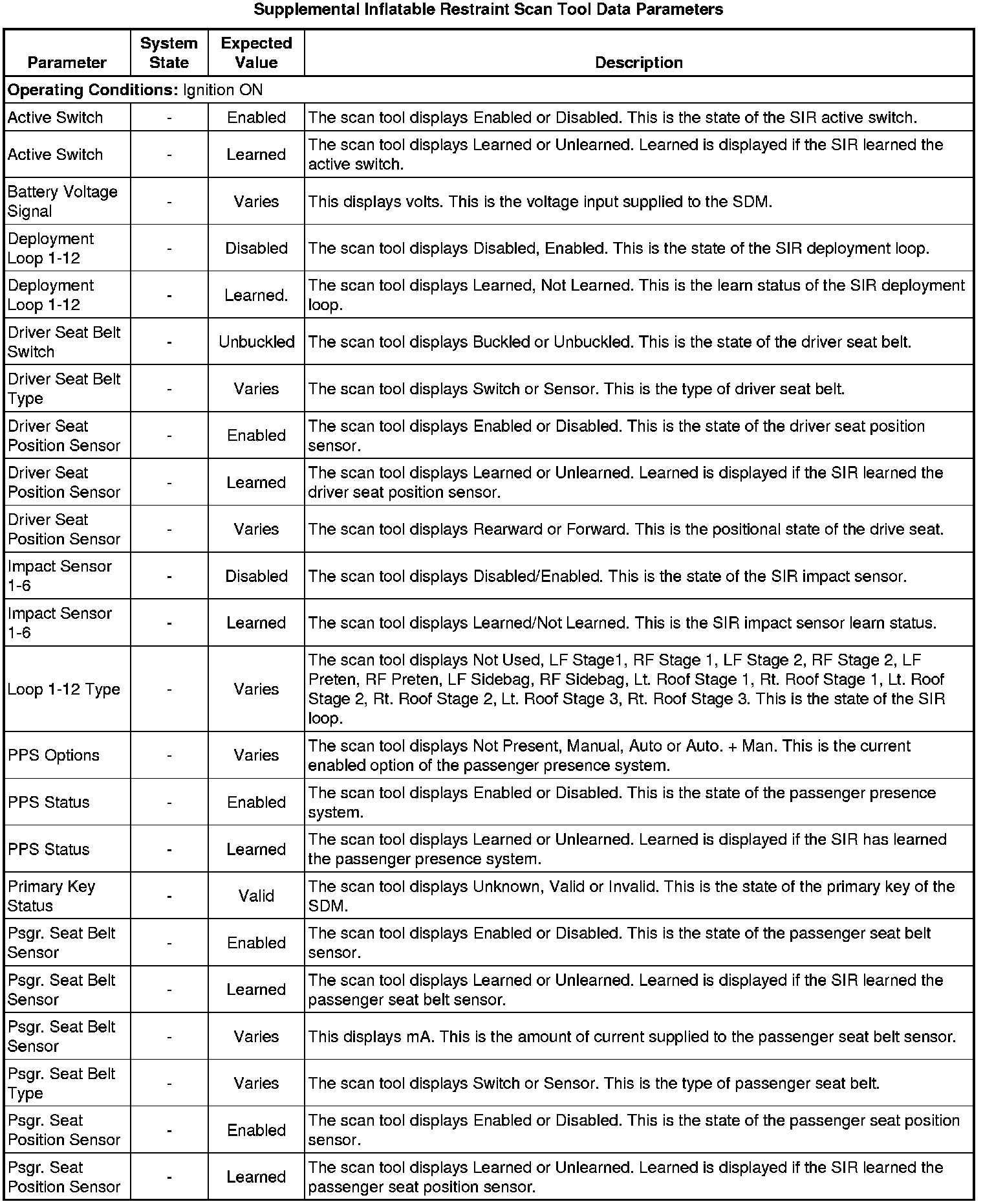 Inflatable Restraint Sensing and Diagnostic Module Scan Tool Information