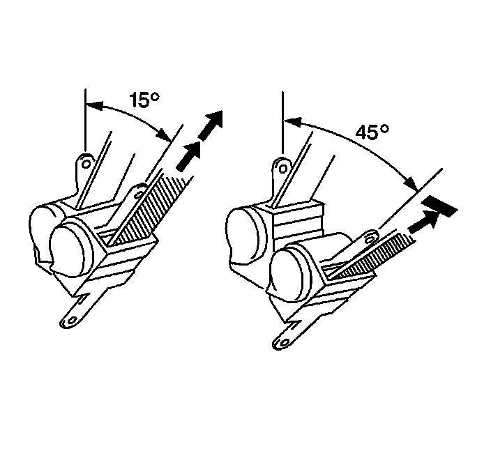 3. Ensure that the seat belt webbing can be pulled from the retractor at an inclination of 15 degrees forward or less, from the retractors mounted position.