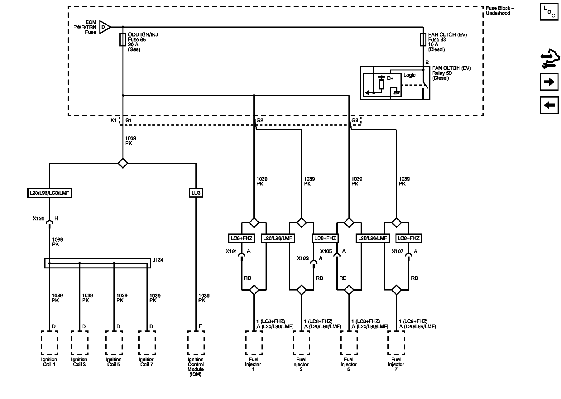 ECM PWR/TRN, EVEN IGN/IJN, FUEL HTR, and V6 FUEL INJ Fuses