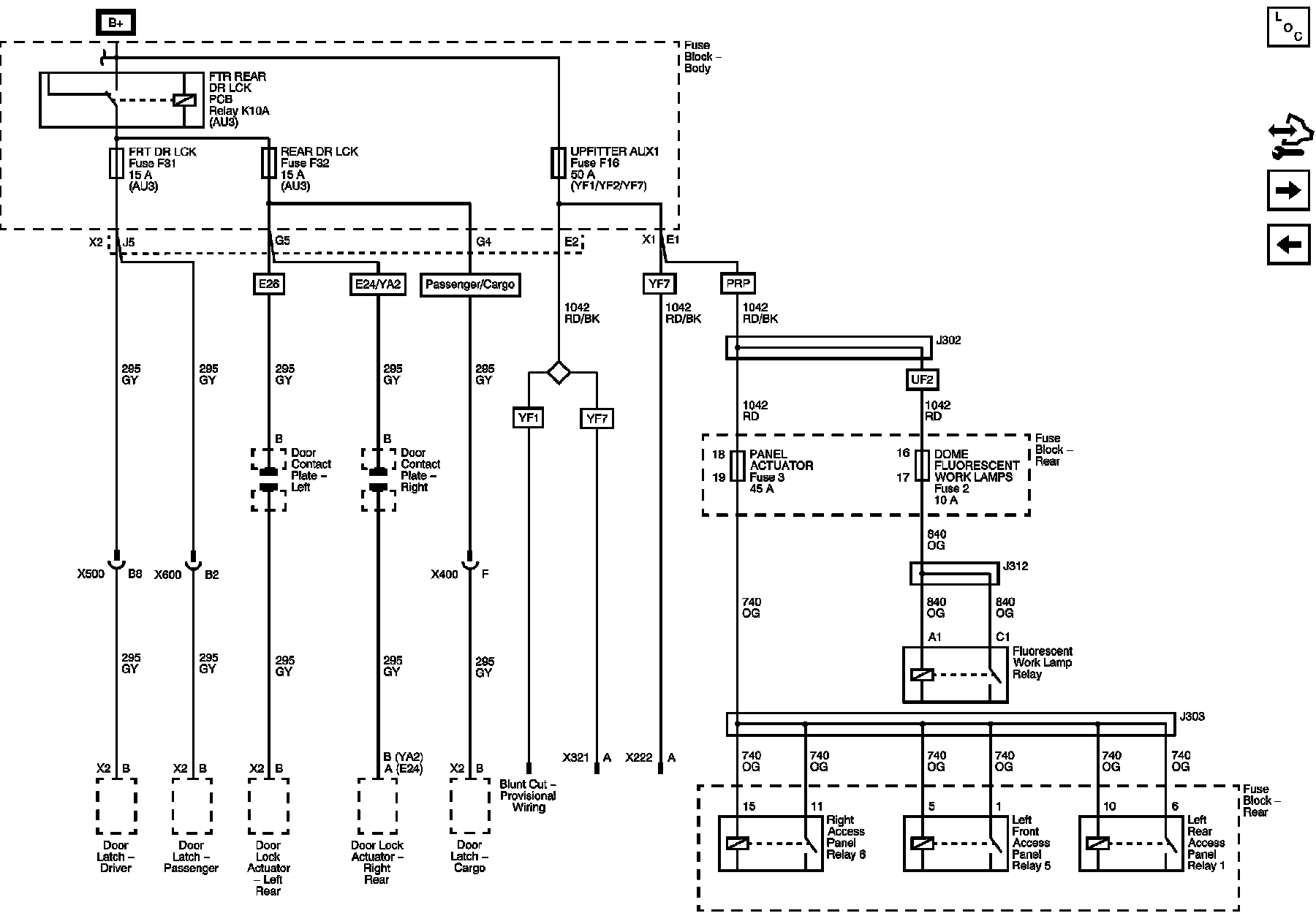 FRT DR LCK, REAR DR LCK and UPFITTER AUX1 Fuses