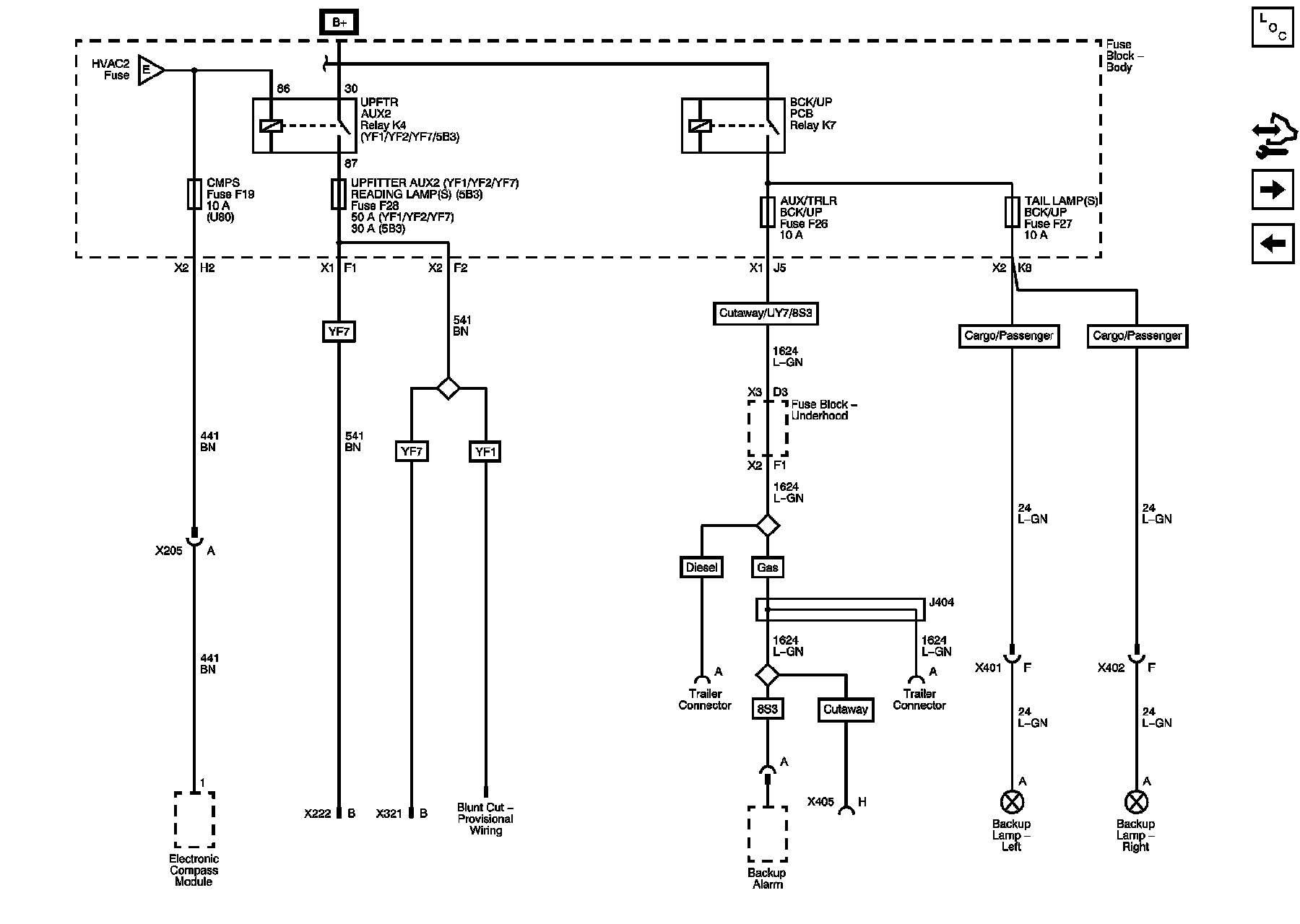 AUX/TRLR BCK/UP, CMPS, READING LAMP(S), TAIL LAMP(S), AND UPFITTER AUX2 Fuses