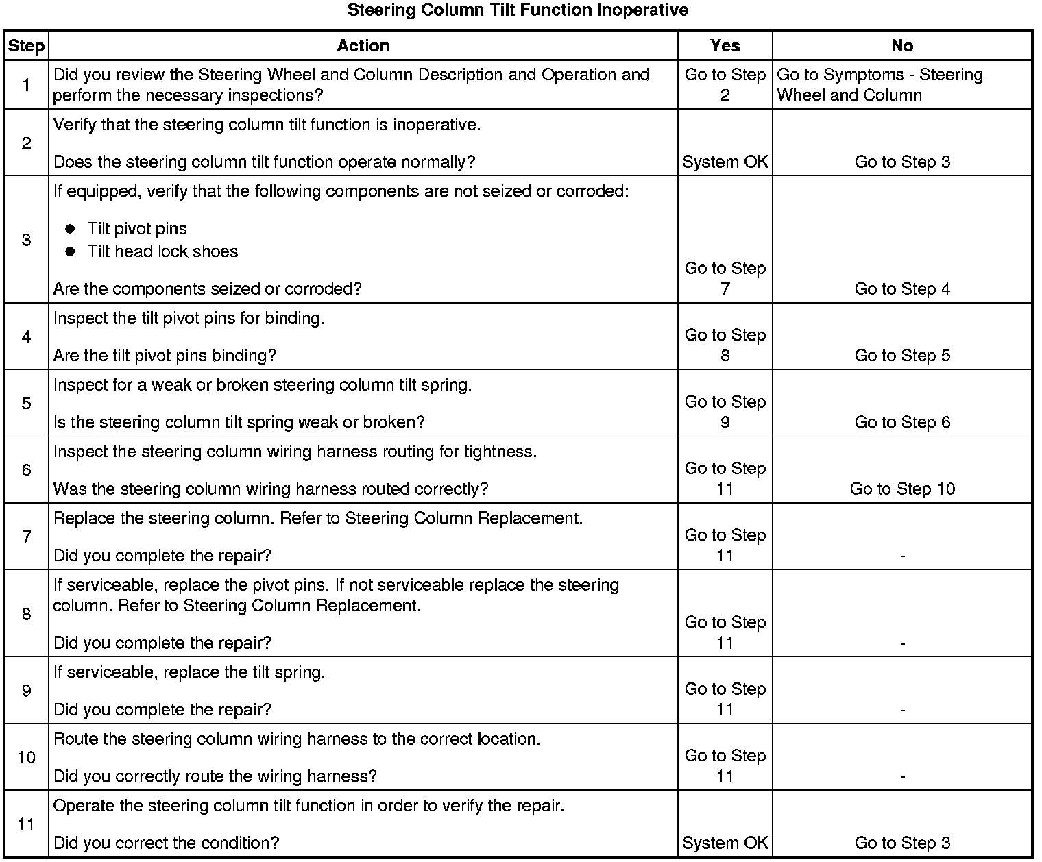 Steering Column Tilt Function Inoperative