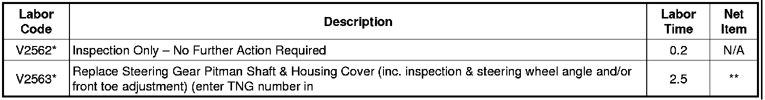 3. Determine the build date of the steering gear by reading the TNG number on the label. Refer to illustration. Refer to the table below to determine if the steering gear pitman shaft must be replaced.