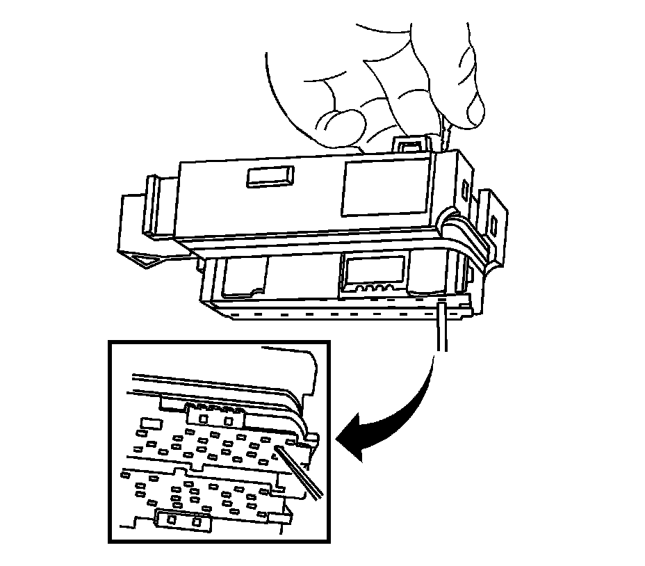 7. Pressing the J-38125-12A - toolin the release cavity of the terminal you are removing, gently pull the wire out of the back of the connector. Always remember never use force when pulling a terminal out of a connector.