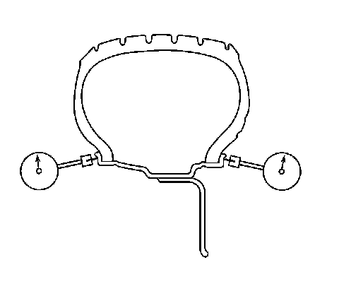 5. If any of the tire beads were not properly or evenly seated, reseat the tire bead, then proceed to step 6. Refer to Tire and Wheel Removal and Installation Service and Repair.