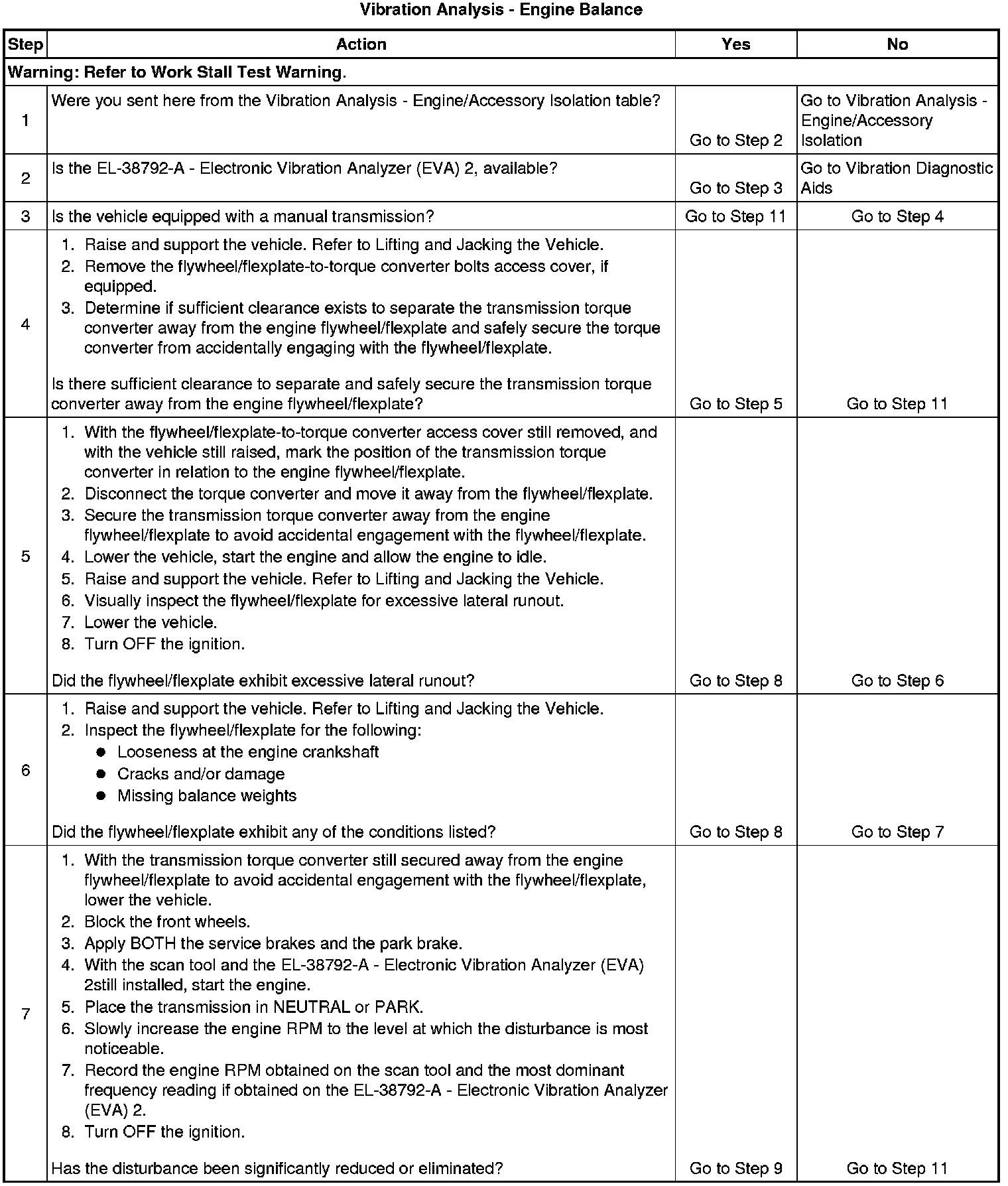 An engine flywheel/flexplate that has excessive lateral runout, when combined with the mass of the transmission torque converter, can produce a disturbance.