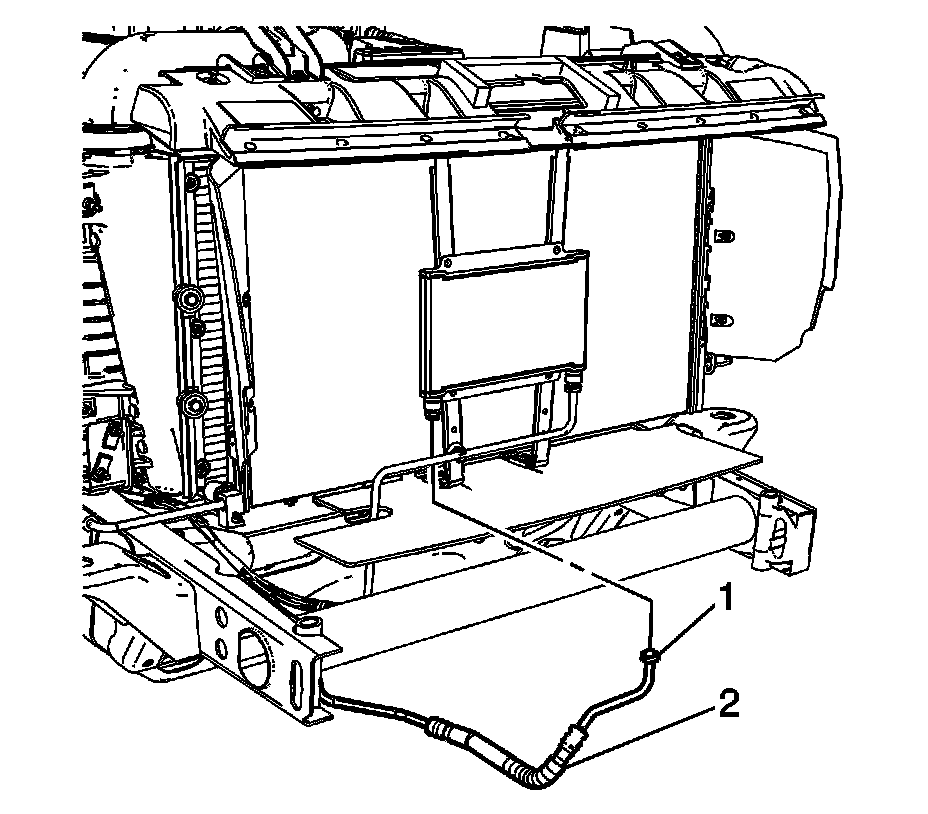 2. Install the transmission fluid auxiliary cooler hose (2) to the radiator.
