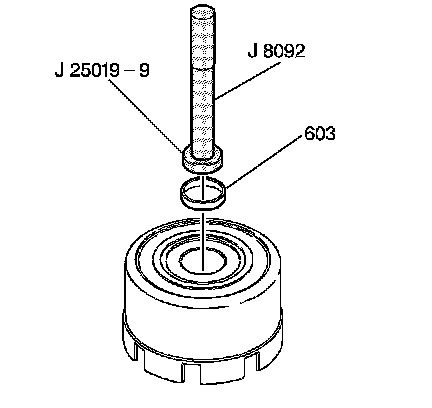 1. Using the J 25019-9 which is part of J 25019 - bushing service setwith the J 8092 - driver handle, install a reverse input clutch front bushing (603).