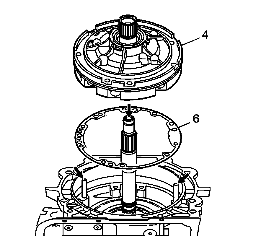 6. Install the oil pump assembly (4) into the case and align all holes properly.