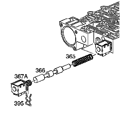 7. Remove the solenoid retainer (395) and the 1-2 shift solenoid (367A).