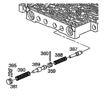 28. Remove the 3-4 relay valve (384) and the 4-3 sequence valve (383) and the 4-3 sequence valve spring (382).