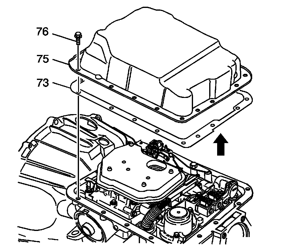 1. Place the transmission oil pan gasket (73) on the case.
