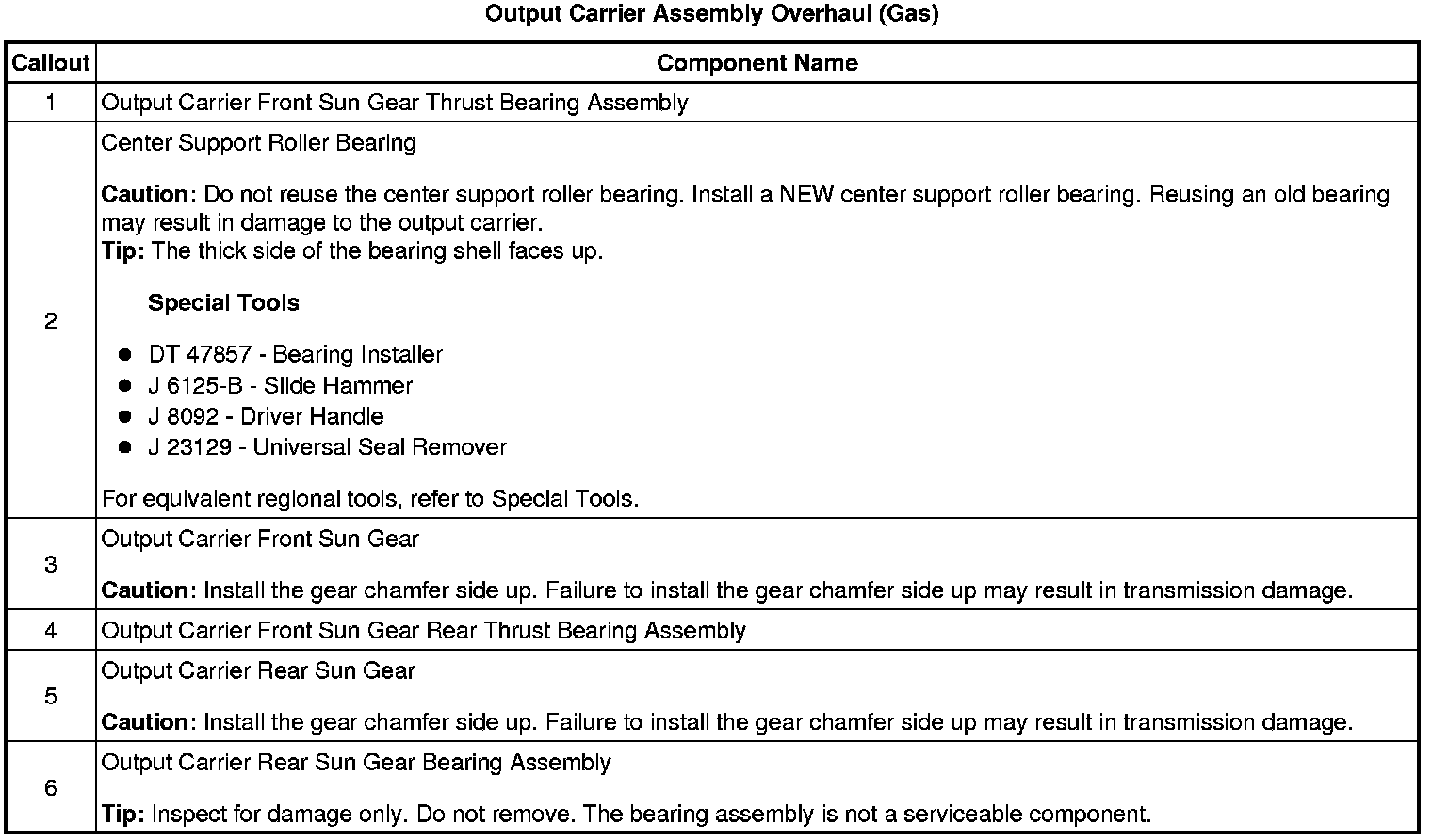 Output Carrier Assembly Overhaul (Gas)