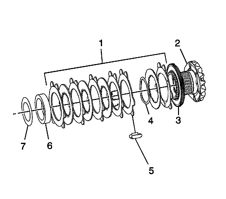 3. Remove and disassemble the locking differential clutch disc set (1).