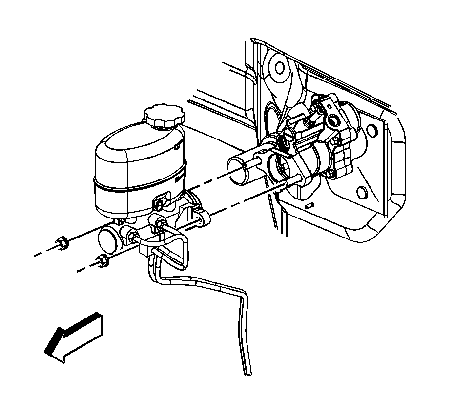 2. Remove the master cylinder from the hydraulic booster. Do not remove the brake pipes. Set the master cylinder aside in the engine compartment.