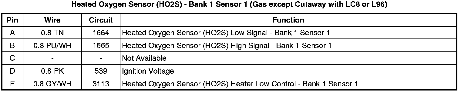 Heated Oxygen Sensor (HO2S) - Bank 1 Sensor 1 (Gas except Cutaway with LC8 or L96)