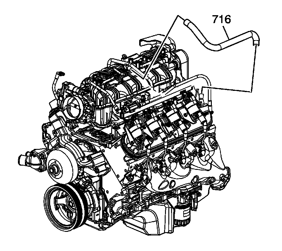 7. Remove the positive crankcase ventilation (PCV) hose - dirty air (716).