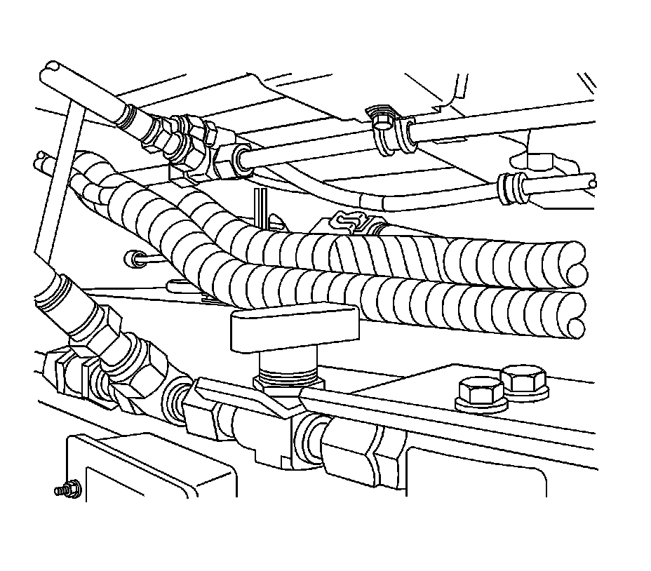 10. Install coolant hose pinch-off tool to coolant lines and place a drain pan under the HPR assembly.
