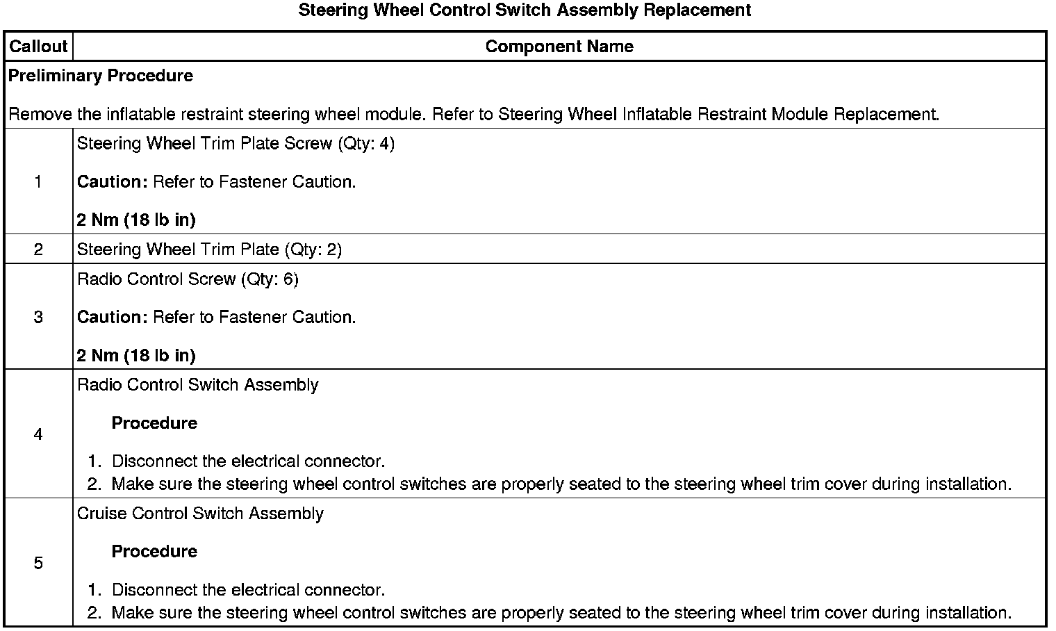 Steering Wheel Control Switch Assembly Replacement