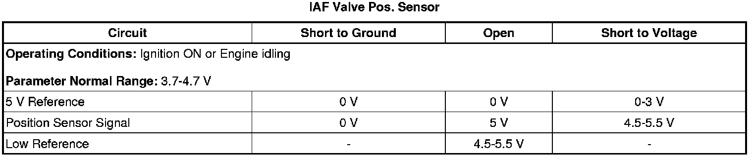 3. Engine idling, observe the scan tool IAF Valve Pos. Sensor voltage parameter. The reading should be between 3.7-4.7 V.