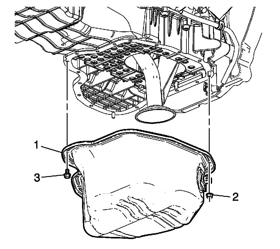 3. Install the lower oil pan nuts (2) and bolts (3).