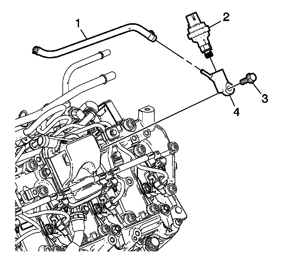 44. Install the engine fuel vacuum switch bracket bolt (3) and tighten to 25 Nm (18 lb ft).