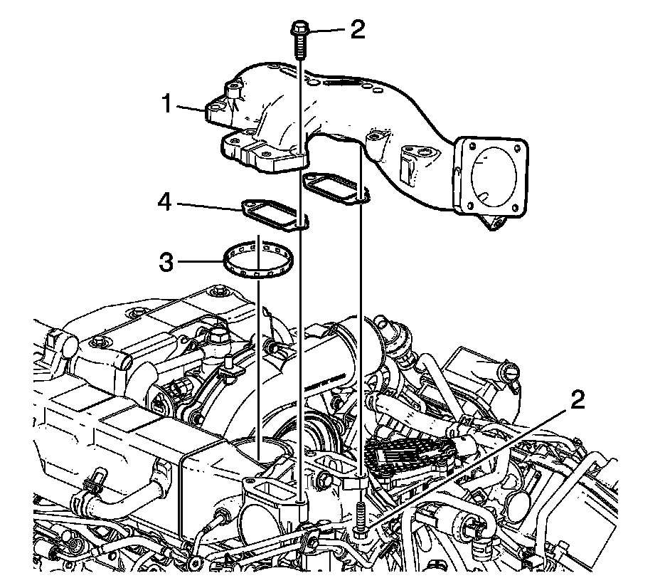 7. Install the intake manifold tube seal (3) and gaskets (4).