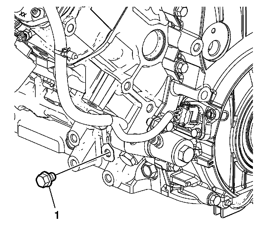 33. Install the right side engine wiring harness bolt (1) and tighten to 10 Nm (89 lb in).