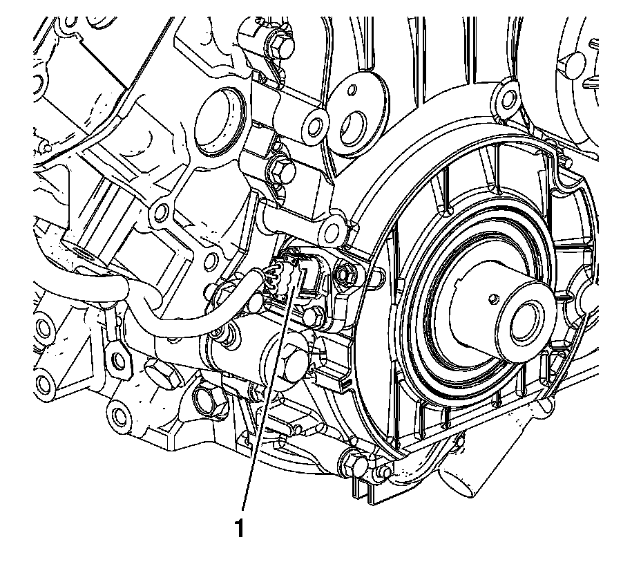 2. Install the turbocharger vane position sensor connector bracket bolt (1) and tighten to 25 Nm (18 lb ft).