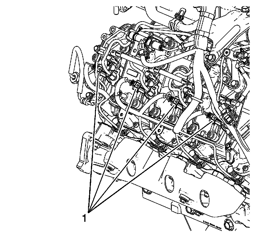 17. Connect the left side fuel injector electrical connectors (1).