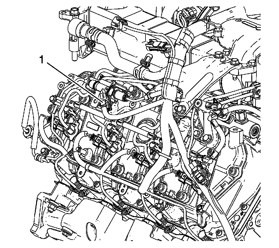 18. Connect the left side fuel rail fuel pressure sensor electrical connector (1).