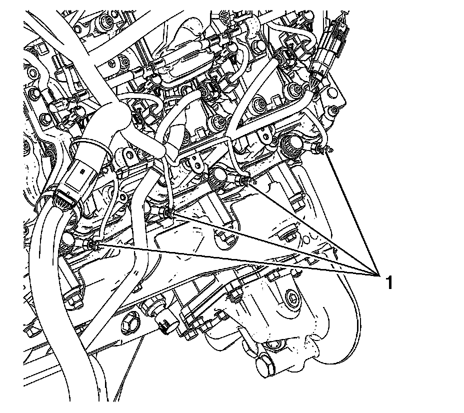 11. Install the fuel feed return pipe clip (1).