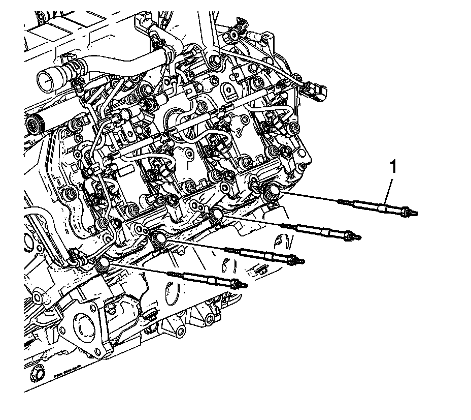 8. Install the left side glow plugs (1).