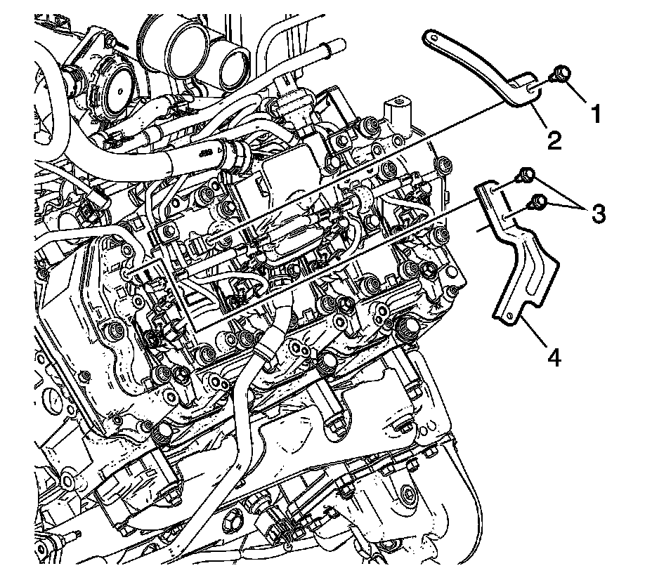 1. Install the turbocharger vane position sensor connector bracket (2).