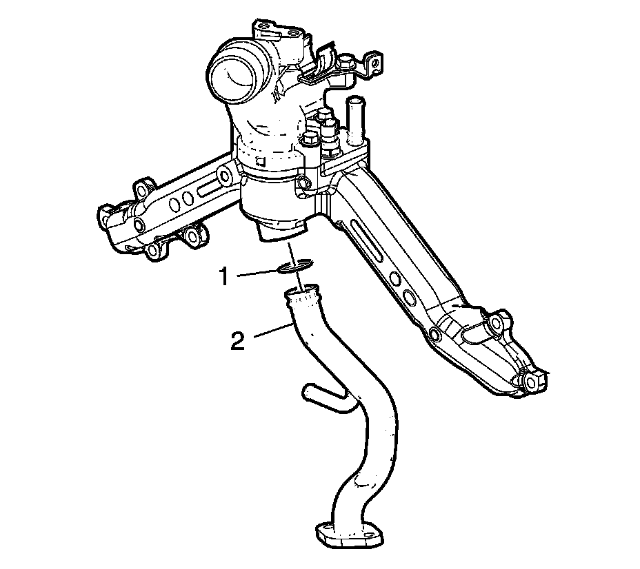 2. Install the thermostat bypass pipe (2).