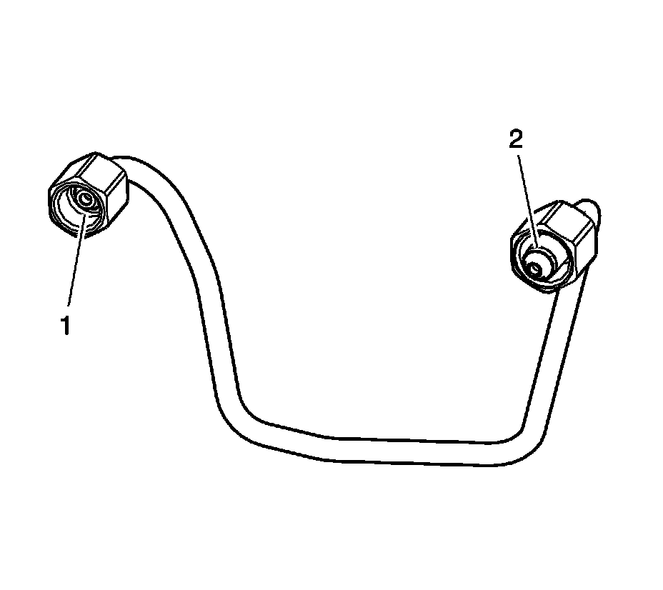 6. Inspect the fuel injector high pressure line for excessive corrosion or damage to the sealing surfaces (1, 2). Replace the line if any damage is found.