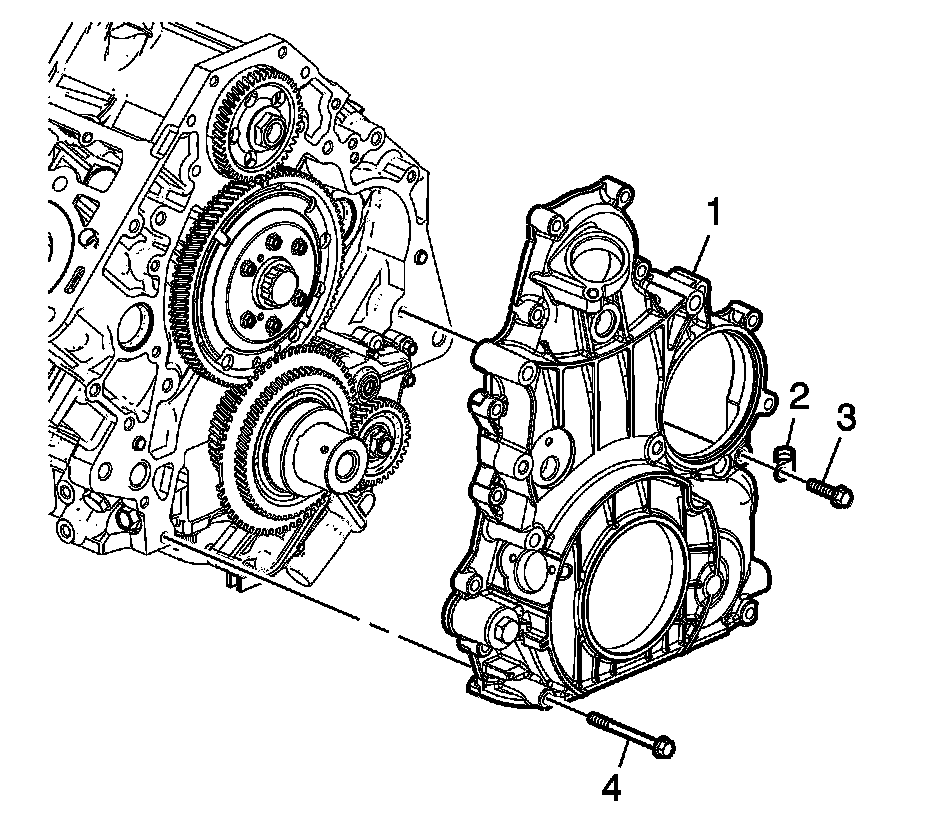 6. Remove the engine front cover bolts (3, 4).