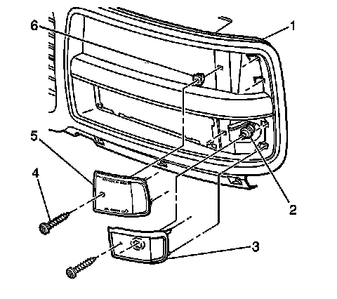1. Remove the screw (4) that retains the side marker or the reflector to the grille.