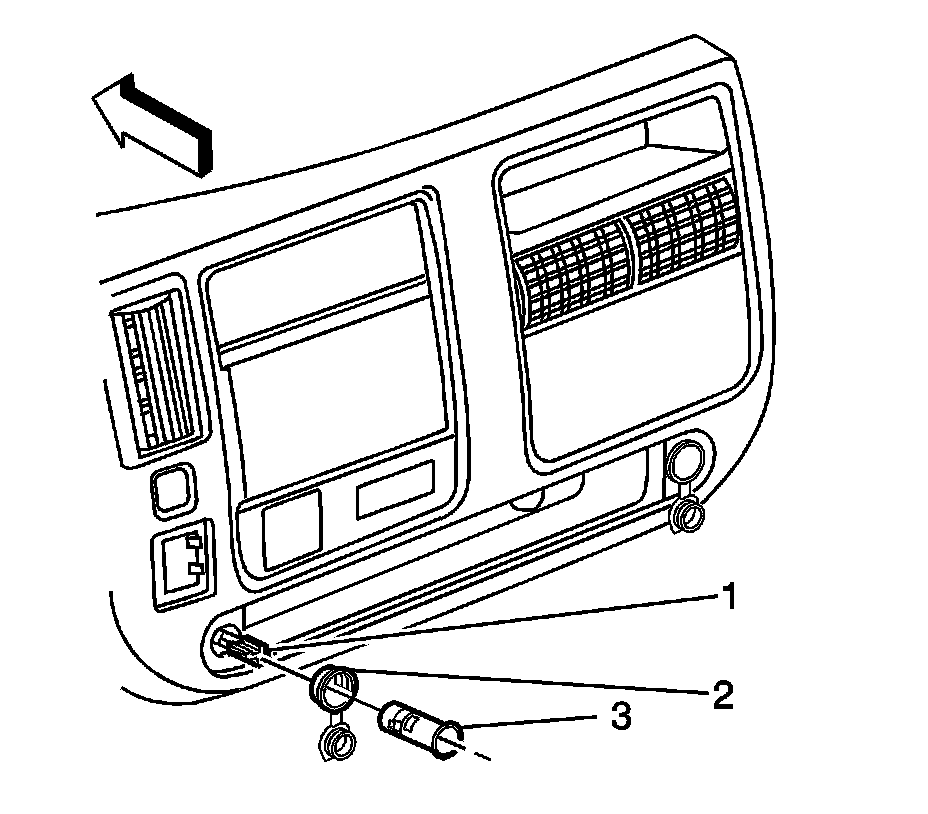 6. Pull the cigar lighter housing (3) and the cigar lighter retainer (2) out of the trim plate.
