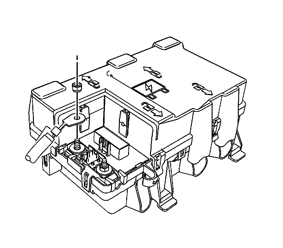 7. Remove the battery positive cover from the underhood bused electrical center (UBEC).