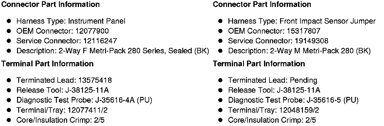 X104 Instrument Panel Harness to Front Impact Sensor Jumper