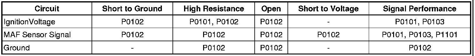 * Depending on the current ambient temperature, and the vehicle operating conditions, a MAF sensor signal circuit that is shorted to the IAT signal circuit will increase or decrease the MAF sensor signal that is interpreted by the ECM. Additionally it may cause a rapid fluctuation in the IAT Sensor parameter.